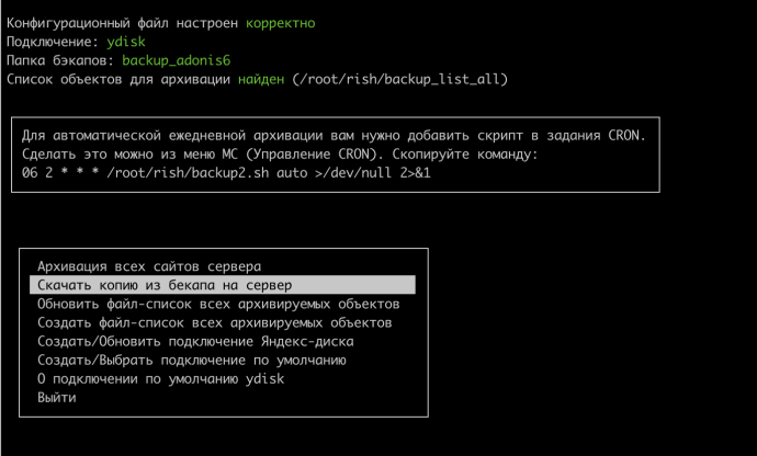 RISH 2.5 — бэкапы на основе утилиты rclone