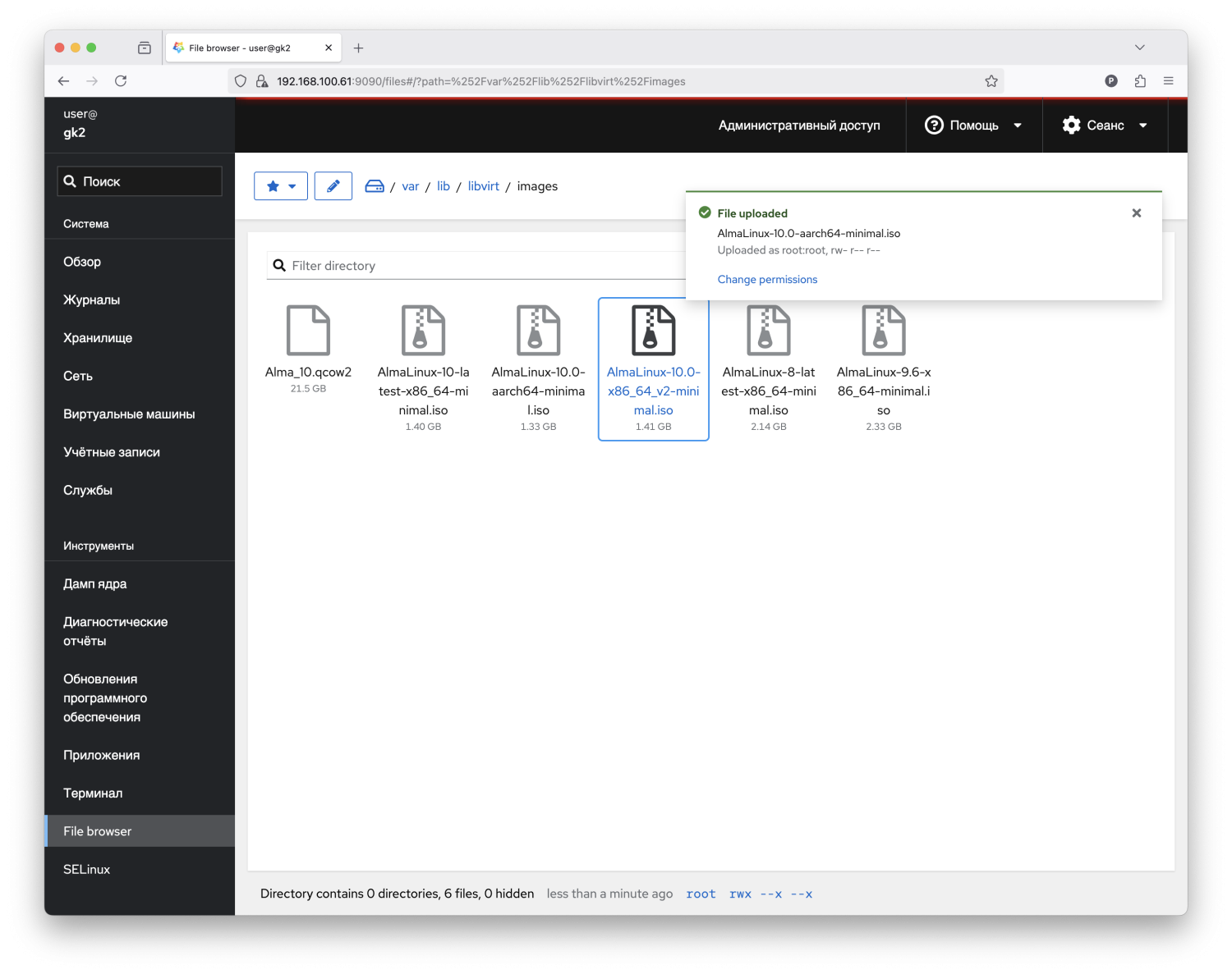Вначале вам нужно загрузить ISO файл с установочным файлом операционной системы, которую вы хотите установить на свою виртуальную машину. ISO файл нужно загрузить в категорию по следующему пути: var/lib/libvirt/images