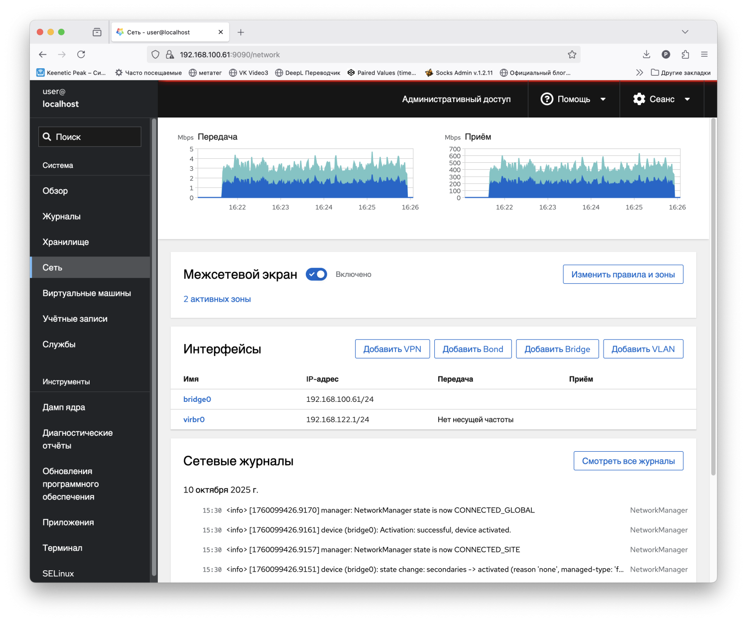 Скрипт автоматически устанавливает и настраивает основные компоненты виртуализации: libvirt, qemu-kvm, Cockpit Machines и Cockpit Storaged, а также активирует сетевые сервисы и веб-панель управления. После запуска вы получаете готовый сервер виртуализации, управление которым доступно через браузер.