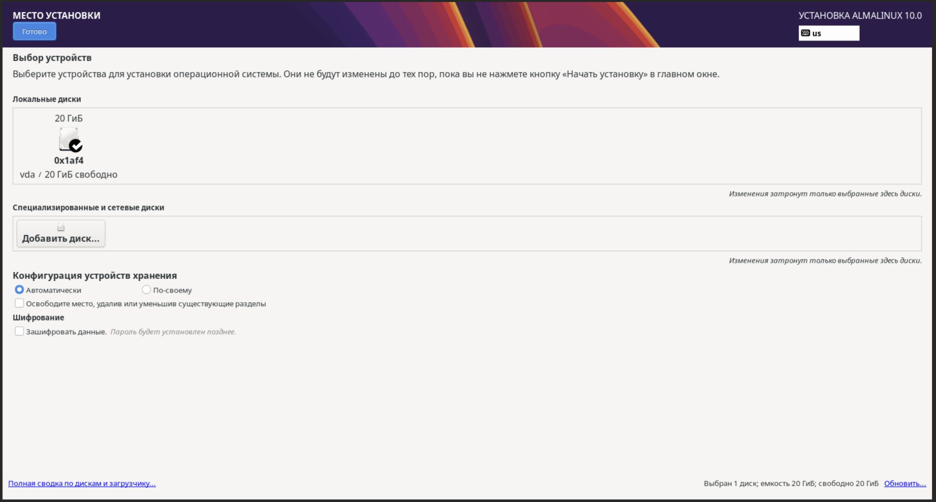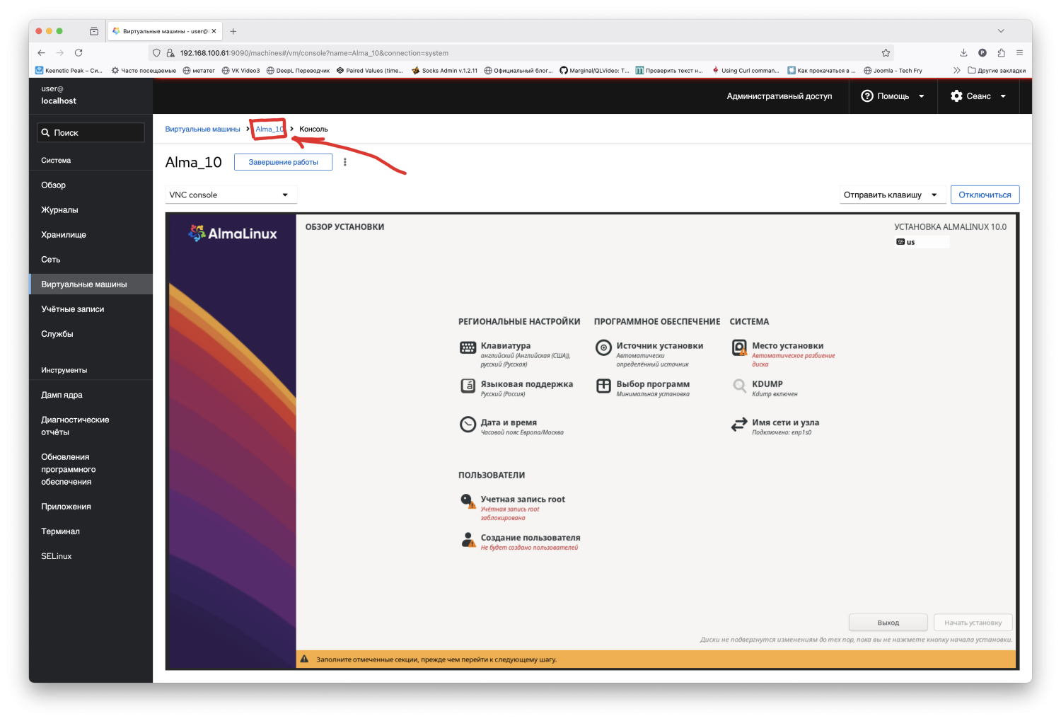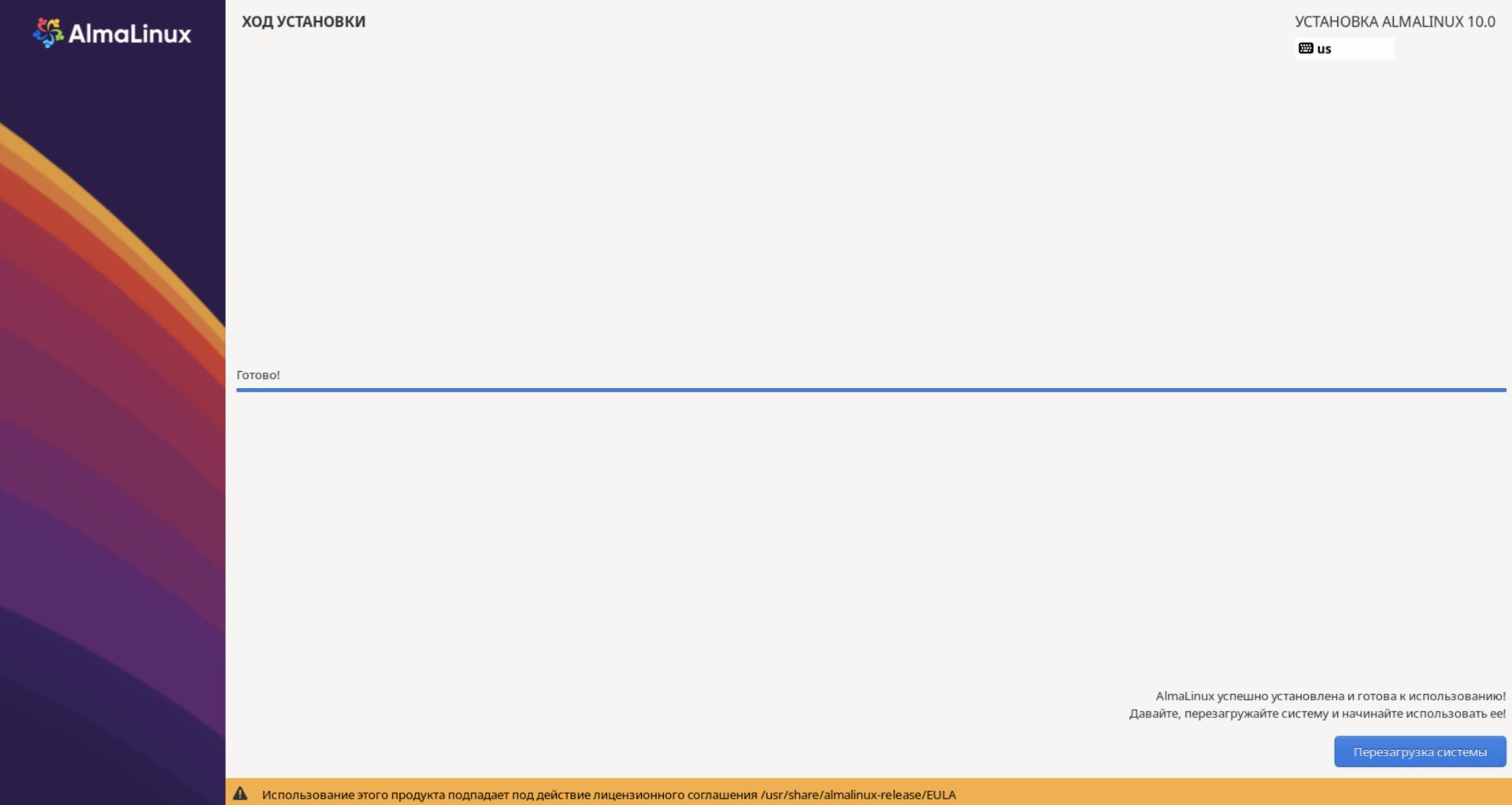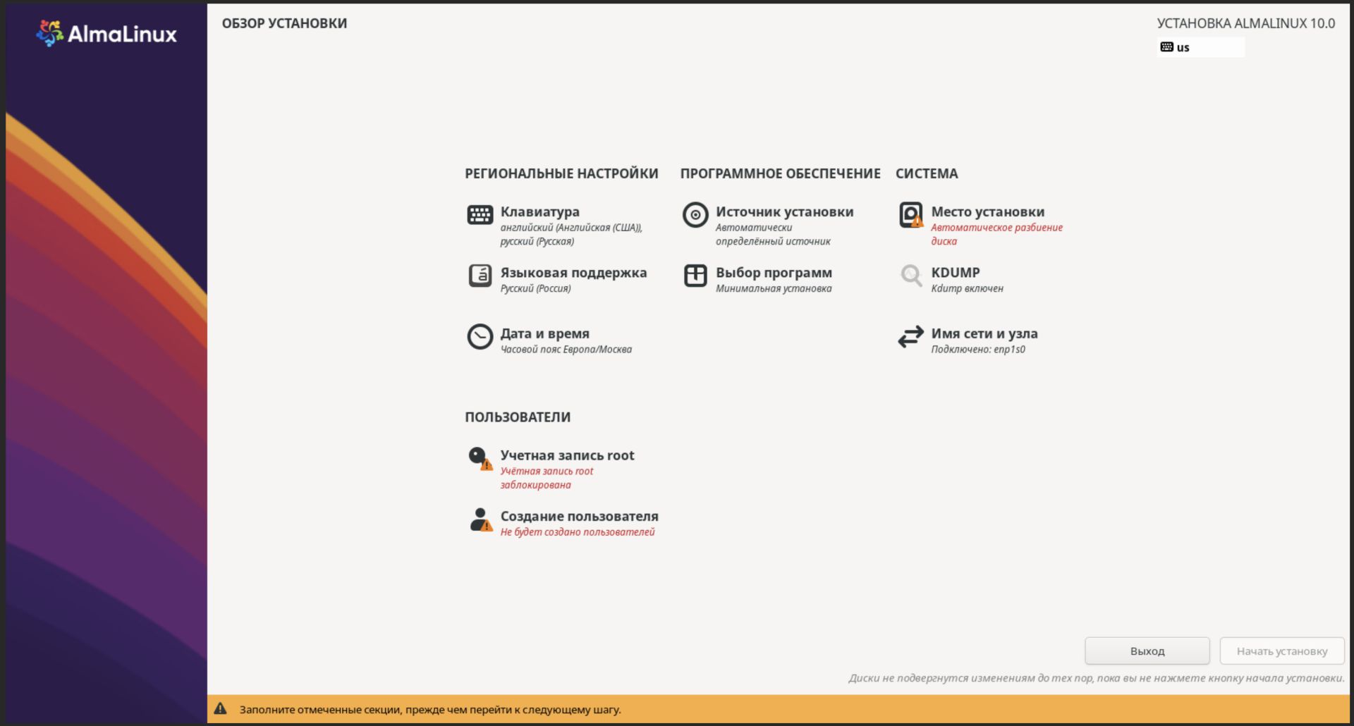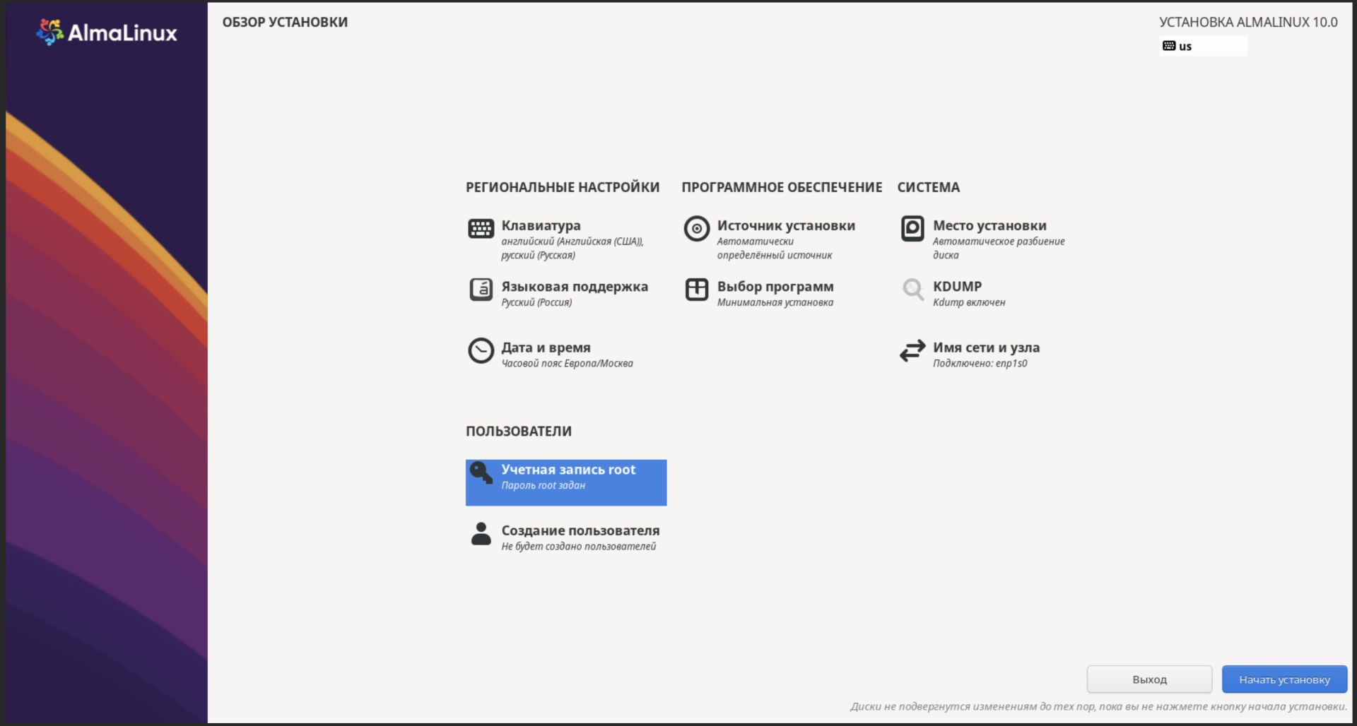 Начать нужно с установки Alma Linux на ваши мини ПК. Для этого загрузите дистрибутив ALma Linux на флешку и начните установку.