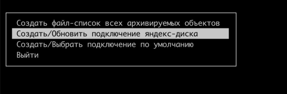 Выбираем Создать/Выбрать подключение по умолчанию. Обратите внимание, что для Яндекс-диска создан отдельный пункт меню, который предоставляет значительно более легкую и простую конфигурацию, чем та, которая идет по умолчанию для rclone.