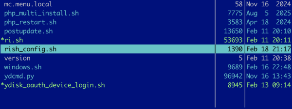 Все настройки в RISH хранятся в файле /root/rish/rish_config.sh