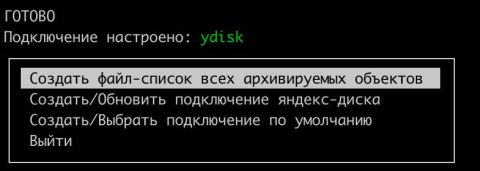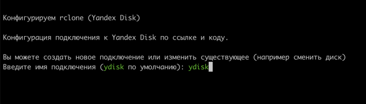Подключение по умолчанию не настроено (подключение 'ydisk' не найдено в rclone).