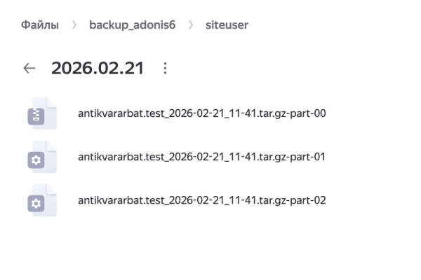 Внутри папки создаются архивы сайтов в формате tar.gz, разбитые на части по 500 Мб (этот размер так же можно менять в файле /root/rish/rish_config.sh. Так как облачные хранилища очень не любят выступать в качестве хранилищ для бэкапов, то зачастую прямая заливка файлов с расширением tar.gz происходит либо с пониженной скоростью, либо со сбоями. Чтобы избежать такого поведения RISH добавляет свое расширение с именем части архива.